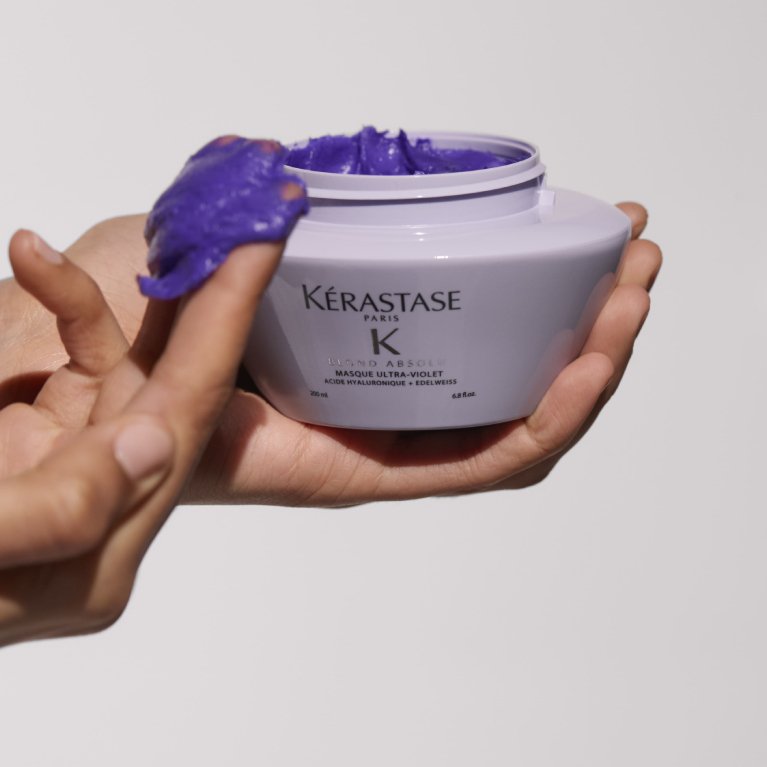 Użyj Masque Ultra-Violet, by uzyskać błyskawiczną neutralizację miedzianych tonów. Po uzyskaniu pożądanego odcienia stosuj fioletową maskę do włosów blond co tydzień, by utrzymać i chronić swój blond kolor. Twój fryzjer może ci doradzić, na jak długo powinnaś pozostawić fioletową maskę do włosów Masque Ultra-Violet na włosach, by uzyskać pożądany ton.