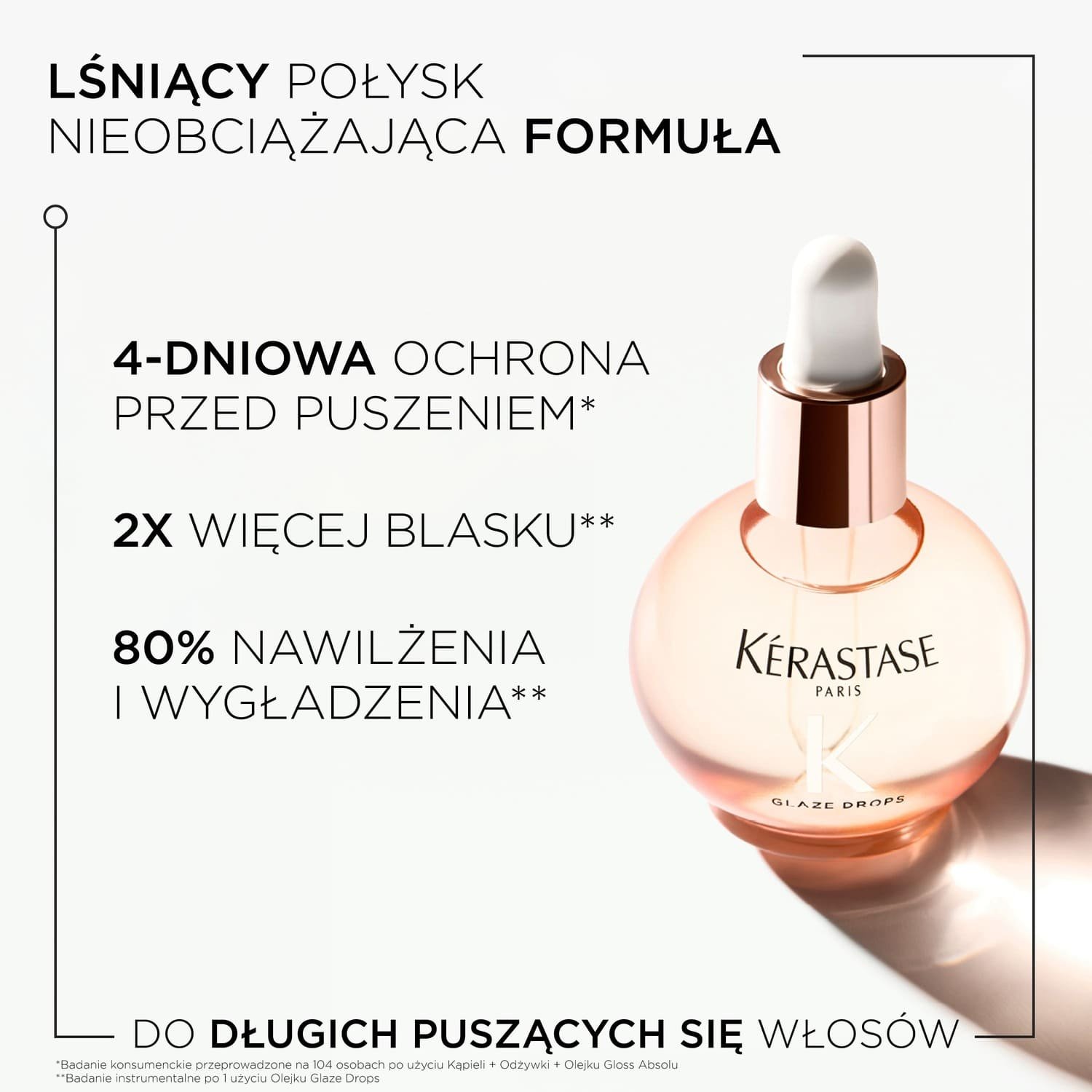 *Badanie konsumenckie przeprowadzone na 104 osobach po użyciu Kąpieli + Odżywki + Olejku Gloss Absolu